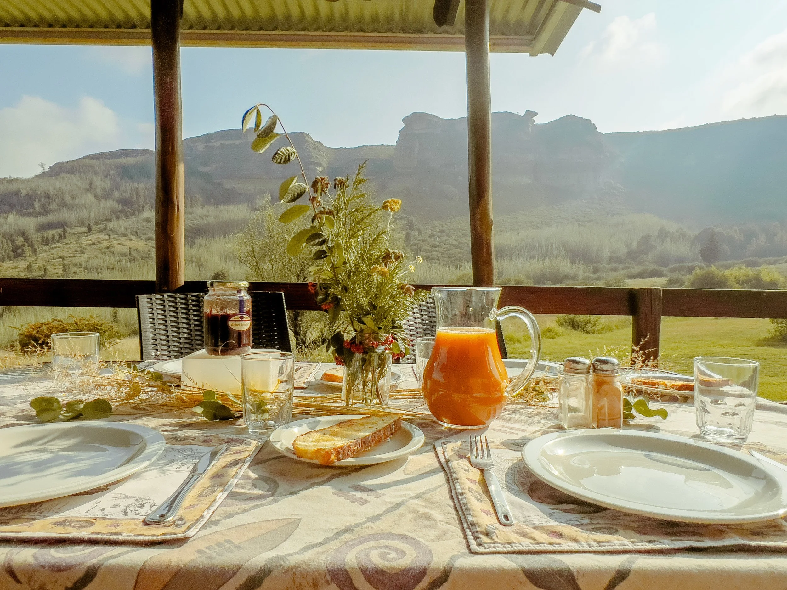 Nestled against a unique sandstone hill resembling a camel’s head, Camelroc Guest Farm offers an escape with stunning views of the Maluti Mountains. Perfectly positioned for exploring the Free State and Lesotho, Camelroc provides a range of self-catering chalets and traditional guesthouse accommodations: